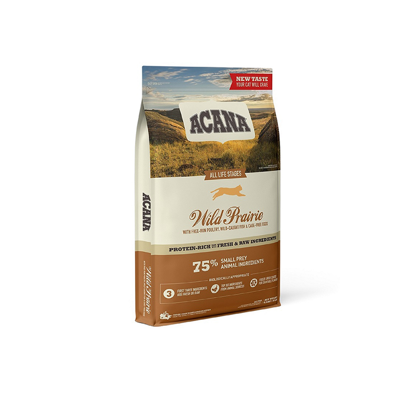 Acana Wild Prairie is loaded with free’run chicken & turkey, cage’free eggs, and wild’caught fish from our cold northern lakes, and delivered fresh or raw in WholePrey ratios, so they?re brimming with goodness and taste