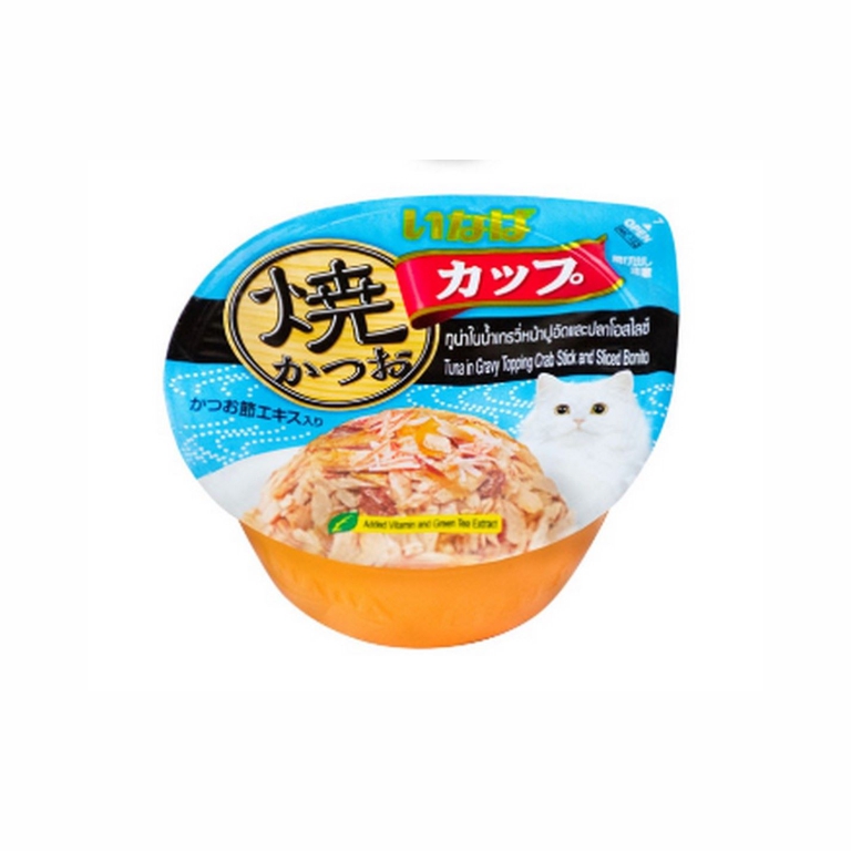 Grain’free wet cat food No preservatives, colourings or grains Helps boost & support the immune system Comes with gently blow torched skipjack tuna Formulated in Japan, manufactured in Thailand INGREDIENTS: Tuna, Crab Stick, Dried Bonito, Guar Gum, Flavoring Agents, Carrageenan, Vitamin E, Green Tea Powder