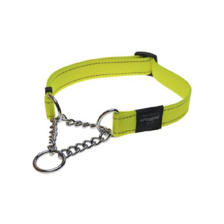 Timeless and classic, hardy but cool. Never shaken ‘ or stirred. The 16mm Snake Half Check Choker Collar combines a limited choke chain with high grade nylon webbing. Woven reflective threads are stitched into the webbing (not painted or screen printed on) to ensure extreme durability . Don’t go out at night or into the woods without one.
