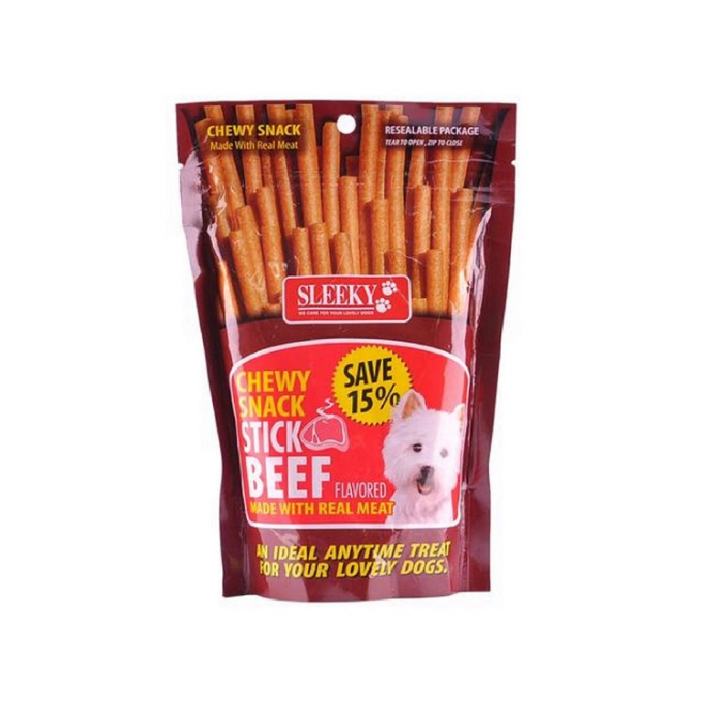 High quality dog treats 175g per pouch Beef flavor Made with real meat An ideal anytime treat for your lovely dogs Suitable for all breeds and all life stages Give at will to show affection to dogs or as a reward treat Store in a cool and dry place. This chewy sticks aren’t just a safe treat for dogs, but offer a variety of health benefits, and give your dog something to chew. Our chewy sticks are easily digestible, unlike some other chews or treats.