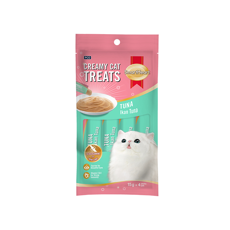 SmartHeart Wet Food For Cats of All Breeds and Life Stages Creamy Tuna Flavor This product is a cat treat perfect for your cat to get completed and balanced nutrition By adding Sodium Hexametaphosphate (SHMP) will prevent plaque occurrence which is a cause of bad breath Plaque prevention from fresh breath Collagen care for healthy skin Prebiotic for digestive care Glucosamine for joint care Taurine for beautiful eyes