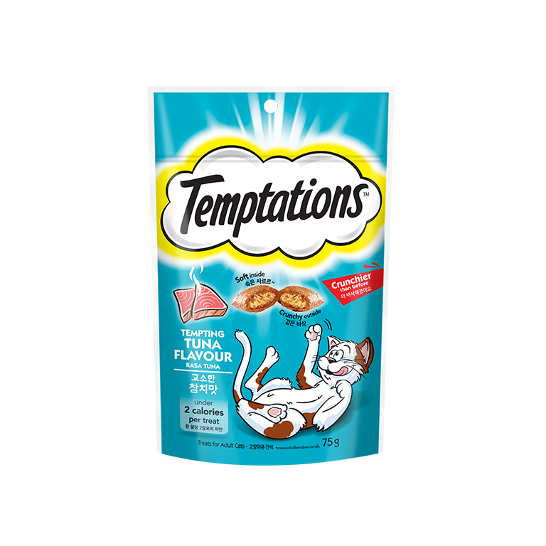 Temptations cat treat provide cats with 100% complete and balanced nutrition ‘ Cat treat which is crunchy on the outside and soft and creamy on the inside ‘ Contains under 2 calorie per treat and no artificial flavours ‘ Comes with the goodness of protein, vitamins and minerals to take care of your fur ball ‘ Unique pocket shape treat for cats with Tuna flavour that your cat will love ‘ Come in a stay’fresh pack to keep your cat treats fresh ‘ Meets the nutritional levels as established by the Association of American Feed Control Officials (AAFCO) Nutrition Profile for adult cat maintenance