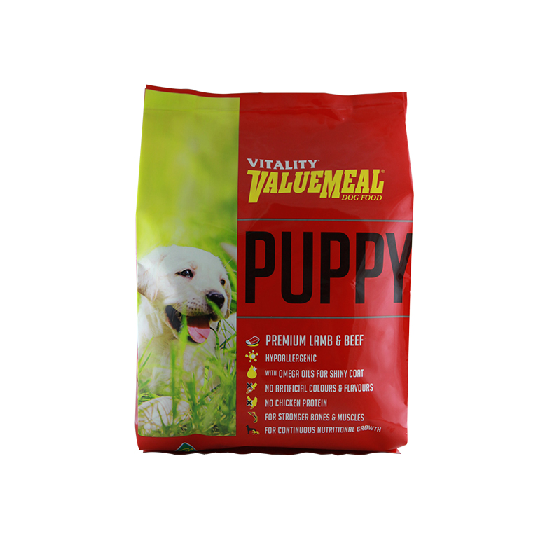 Vitality ValueMeal is ; made from high quality Australian Lamb, Beef and wholegrain cereals . It has been formulated to give your dog a complete and balanced food, and to ensure the high digestibility of essential nutrients, vitamins and minerals for good health and vitality. Vitality is hypoallergenic. It uses only Australian lamb and beef as main sources of protein. It does not use any meat from poultry products that may cause allergies to some dogs. Vitality uses Omega’3 and Omega’6 to give dogs superior coat shine and healthy skin. This Omega Magic Oil Blend brings out their vibrant glow. Vitality makes a dog?s stool firm and with minimal odour. It does not contain any by’product for a healthier excretion.Small Bites Premium Lamb & Beef Hypoallergenic With Omega Oil for Shiny Coat No Artifical Colours and Flavors No Chicken Protein For Stronger Bones & Muscles For Continuous Nutritional Growth in original packaging