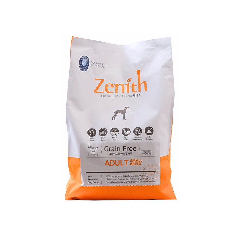 Bow Wow Zenith produces a range of kibbles for dogs of different sizes and life stages. This kibble has no corn, soybean or wheat and is most suitable for small dogs with sensitive stomachs or mild allergies to wheat. This recipe also contains yucca extract which helps to reduce unpleasant odours in faeces and alleviate pain and inflammation. Bow Wow Zenith Soft Kibble Small Breed promotes vitality in highly active small dogs. This kibble can also help your dog to maintain its beautiful appearance with healthy skin and shiny coat. A wholesome and nutritious meal ? Rich in B’glucan, Omega 3 & 6 fatty Acids (DHA, EPA), calcium, L’carnitine, vitamins and minerals (vit. A, D3, E, B3, B1, B5, magnesium, iron zinc, selenium). Weight: 1.2 Kilogram